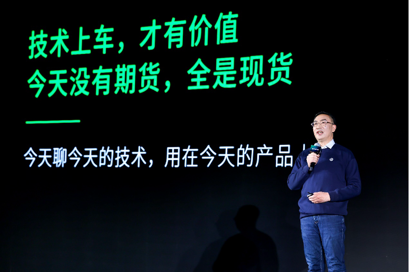 零跑汽車創(chuàng)始人、董事長、CEO朱江明在開放日上演講/公司供圖