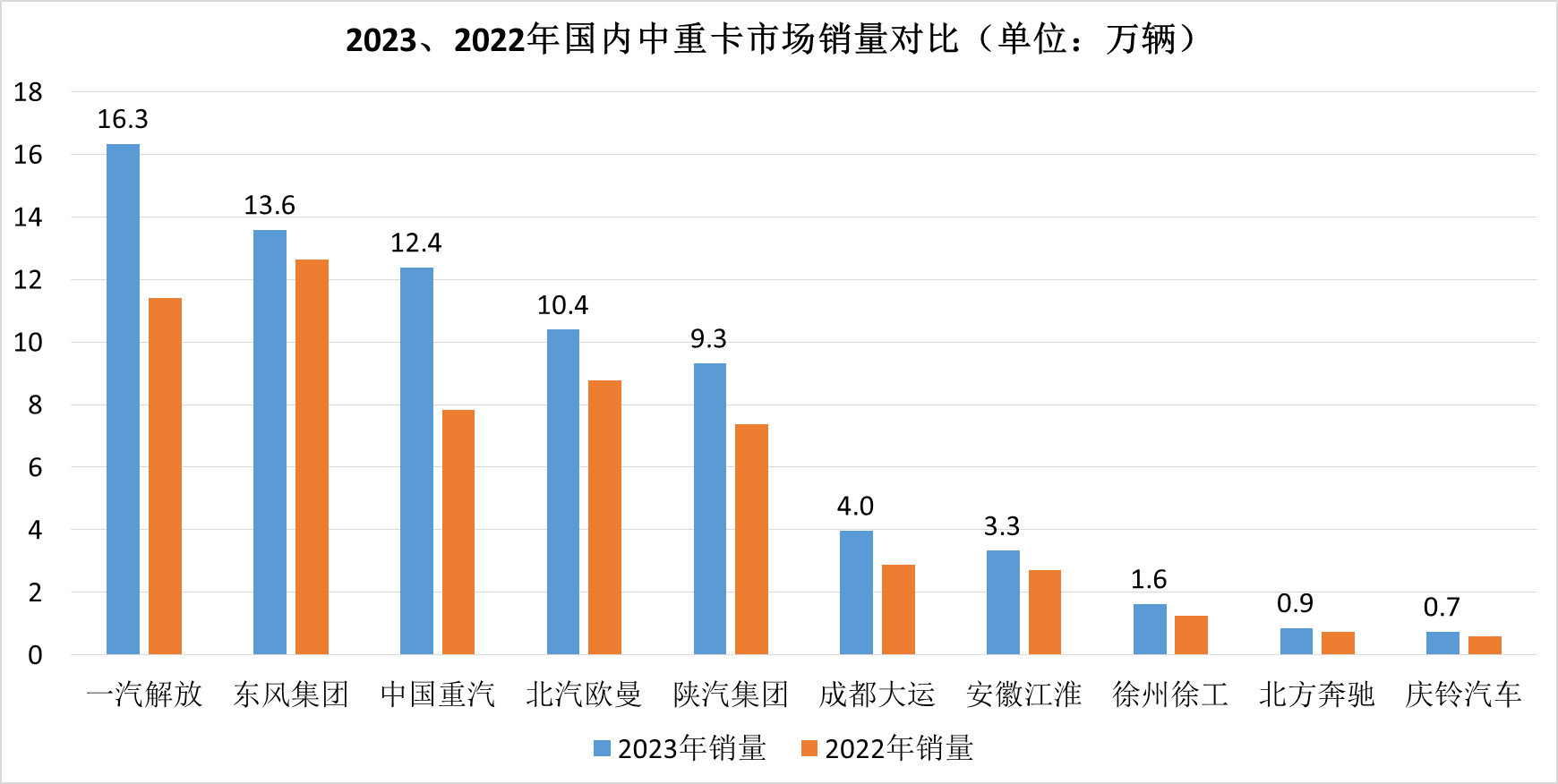 2023年1-12月中重卡市場銷量表(單位:輛)