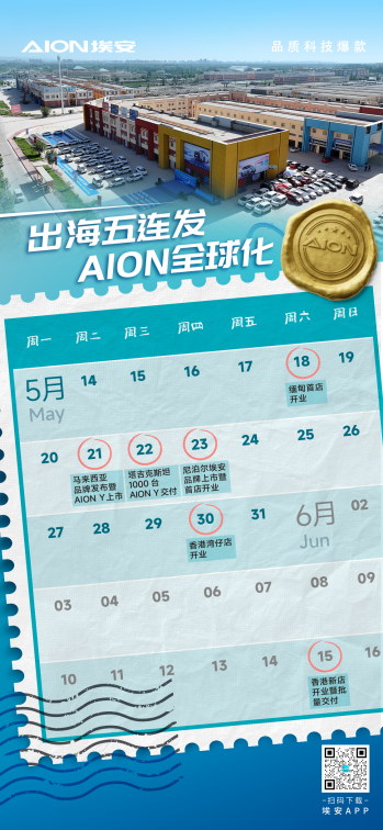 5月份以來,埃安出海動(dòng)作更是十分密集,5月11日,埃安于新加坡完成批量交付,標(biāo)志著埃安正式在新加坡這一高端市場取得突破,并將對東南亞市場起到積極的輻射和窗口示范作用;5月14日,廣汽能源科技(泰國)有限公司注冊成立,意味著埃安新能源汽車充電業(yè)務(wù),正式面向泰國展開服務(wù);5月18日,埃安緬甸首店開業(yè),為當(dāng)?shù)仄囀袌鲎⑷胄禄盍Γ?月21日,埃安亮相馬來西亞汽車展,旗下熱銷車型AION Y Plus正式在當(dāng)?shù)厣鲜?,國際化布局再下一城;5月22日,塔吉克斯坦首批1000臺AION Y Plus交付,創(chuàng)下塔吉克斯坦單次新能源汽車進(jìn)口紀(jì)錄;5月23日,埃安正式進(jìn)入尼泊爾市場,不僅引入車型順利打開南亞市場,還把光儲充換等先進(jìn)能源生態(tài)導(dǎo)入尼泊爾,有效推動(dòng)了當(dāng)?shù)氐某潆娀A(chǔ)設(shè)施建設(shè);5月30日,埃安中國香港灣仔店已正式開業(yè),這是繼年初九龍灣展廳開業(yè)的又一落子。