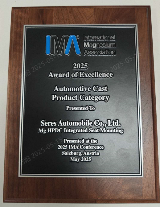 在奧地利舉辦的第82屆世界鎂業(yè)大會上,賽力斯集團的“鎂合金一體化高壓壓鑄座椅支架件”項目榮獲國際鎂協(xié)(IMA)2025年度“優(yōu)秀汽車鑄件獎”。這體現(xiàn)了賽力斯在材料科學(xué)和制造工藝上的持續(xù)創(chuàng)新突破,標(biāo)志著賽力斯在鎂合金汽車應(yīng)用領(lǐng)域已躋身全球領(lǐng)跑者行列。