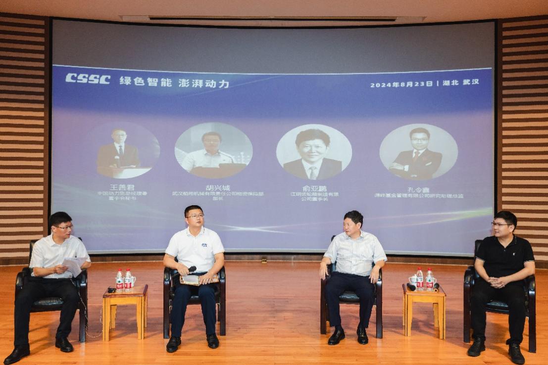在研討環(huán)節(jié),中國動(dòng)力副總經(jīng)理兼董事會(huì)秘書王善君與武漢船機(jī)物資保障部部長胡興城,江陰齒輪箱有限公司董事長俞亞鵬,源峰基金管理有限公司研究助理總監(jiān)孔令鑫圍繞“共建責(zé)任供應(yīng)鏈”進(jìn)行了充分的交流。
