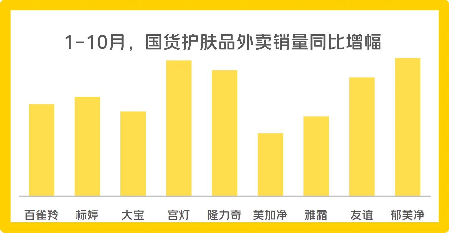 ▲在“外賣送一切”的消費(fèi)趨勢(shì)下,國(guó)貨護(hù)膚品外賣銷量大漲。