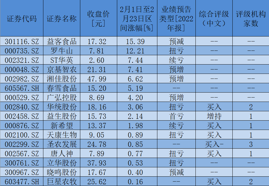表:2月1日至2月23日,養(yǎng)雞概念板塊期間實(shí)現(xiàn)上漲個(gè)股一覽。