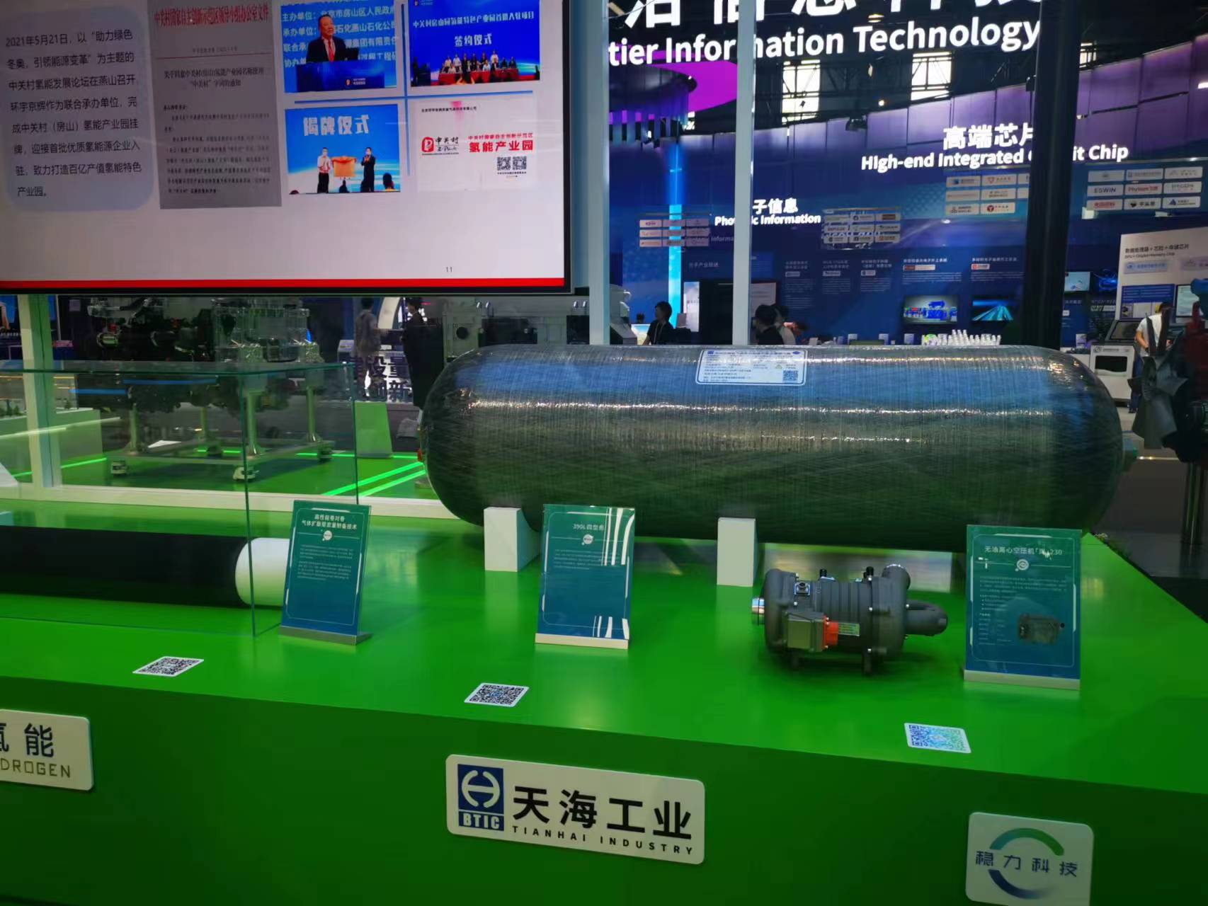 在論壇的產(chǎn)業(yè)展區(qū),多家氫能企業(yè)展示了最新的技術(shù)和產(chǎn)品。其中,北京天海工業(yè)有限公司的工作人員向記者介紹,公司是世界三大氣瓶制造商之一,擁有完全自主知識產(chǎn)權(quán)的車載儲氫氣瓶產(chǎn)品,為氫燃料電池汽車提供了輕量化車載供氫系統(tǒng)新選擇。新研氫能源科技有限公司展臺負責(zé)人向記者介紹,公司此次帶來了氫能在船舶動力領(lǐng)域的應(yīng)用。