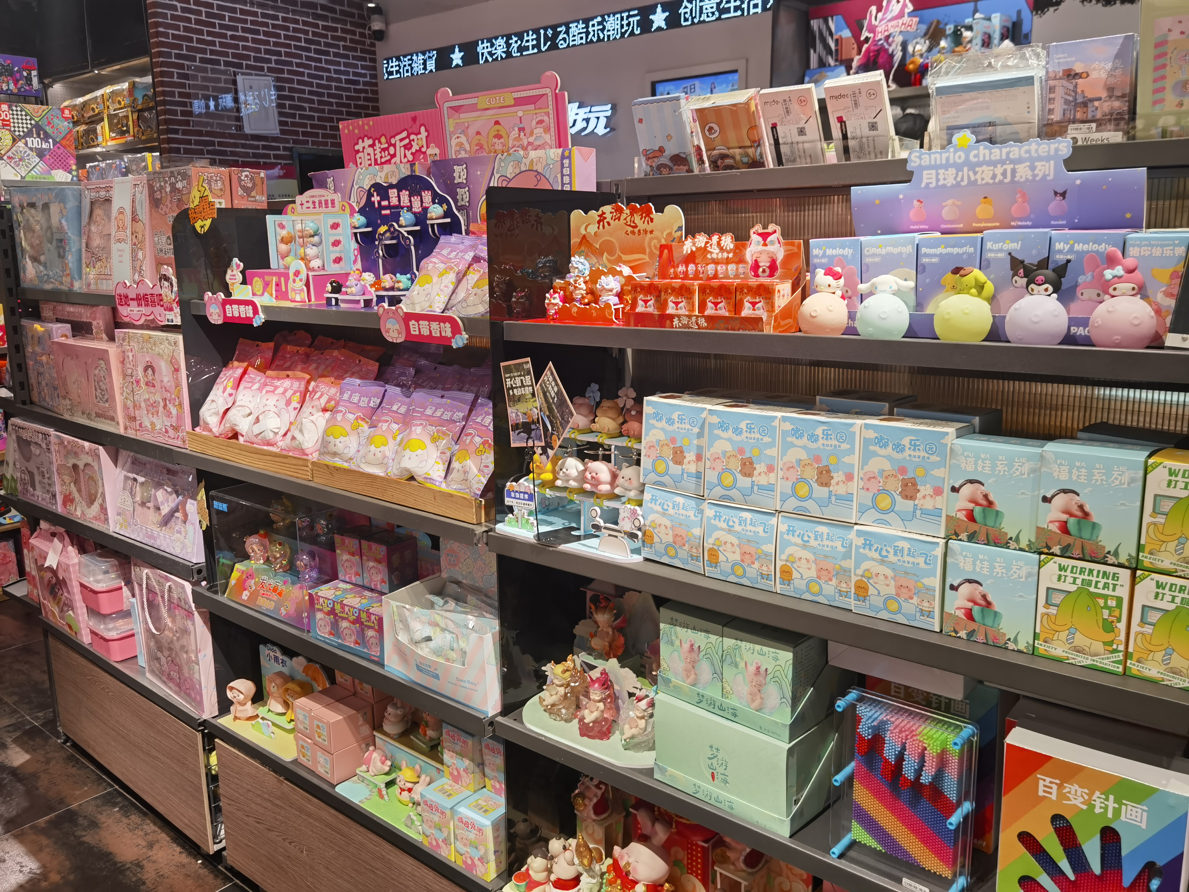 某潮玩店玲瑯滿目的盲盒貨架
