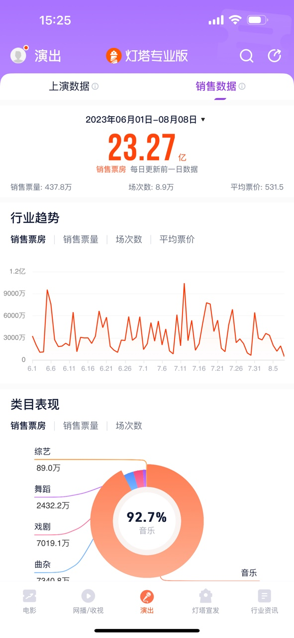 今年暑期演出市場(chǎng)持續(xù)爆發(fā),據(jù)燈塔專業(yè)版數(shù)據(jù)顯示,暑期檔(6月1日-8月8日),演出市場(chǎng)票房為23.27億元。較疫情前2019年同期,演出觀演人次翻倍,演出票房增長(zhǎng)168%。從演出內(nèi)容上來(lái)看,整體音樂(lè)品類(演唱會(huì)/音樂(lè)節(jié))最受歡迎,演唱會(huì)演出場(chǎng)次同2019年基本相當(dāng),但大型項(xiàng)目增加,場(chǎng)均的觀演人次較之前增長(zhǎng)2倍;音樂(lè)節(jié)供給明顯增長(zhǎng),演出場(chǎng)次增長(zhǎng)近2倍。
