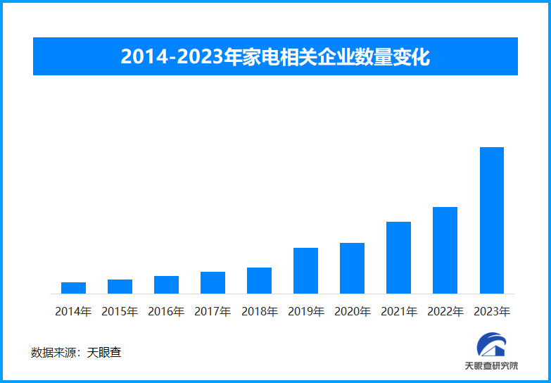 天眼查專業(yè)版數(shù)據(jù)顯示,截至目前,現(xiàn)存與家電相關(guān)的企業(yè)超過1921.9萬家,其中2024年1月份到10月份以來的企業(yè)注冊(cè)數(shù)量為404.3萬家。從企業(yè)年度注冊(cè)量可以看出,近十年來,家電相關(guān)企業(yè)的注冊(cè)量一直呈現(xiàn)出穩(wěn)健的上升趨勢(shì),并于2023年達(dá)到峰值,注冊(cè)量超過415.8萬家??梢钥吹?,無論是消費(fèi)還是生產(chǎn)銷售等各條鏈路,家電行業(yè)都呈現(xiàn)出非常喜人的增長(zhǎng)態(tài)勢(shì)。