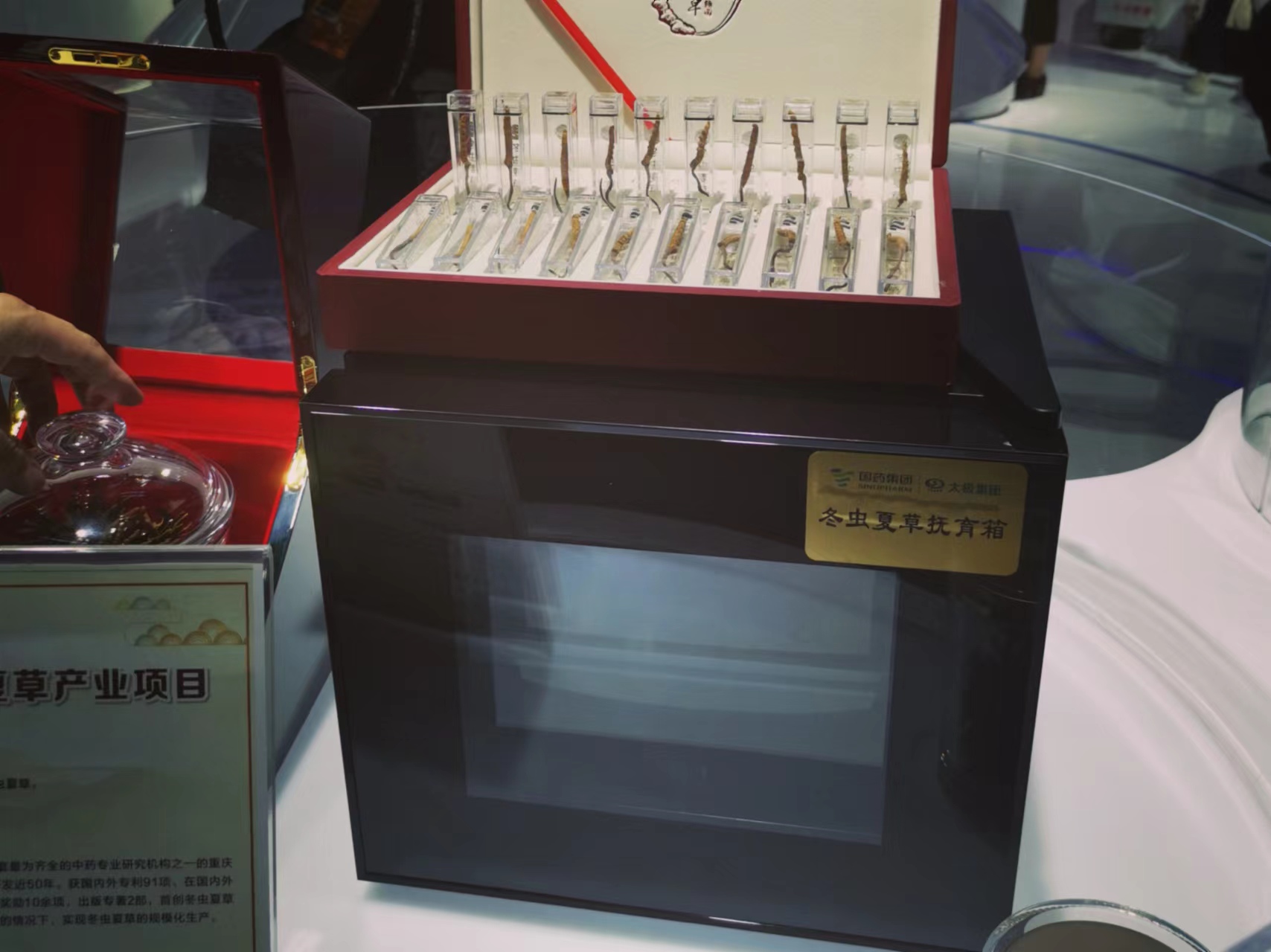 此次參加服貿(mào)會的還有眾多國內(nèi)企業(yè)。在國藥集團展臺上,記者被國藥太極的冬蟲夏草撫育箱吸引,據(jù)工作人員介紹,這是開國內(nèi)冬蟲夏草人工繁育研究先河的技術(shù),使用高原土壤在平原地區(qū)用撫育箱人工生產(chǎn)冬蟲夏草。