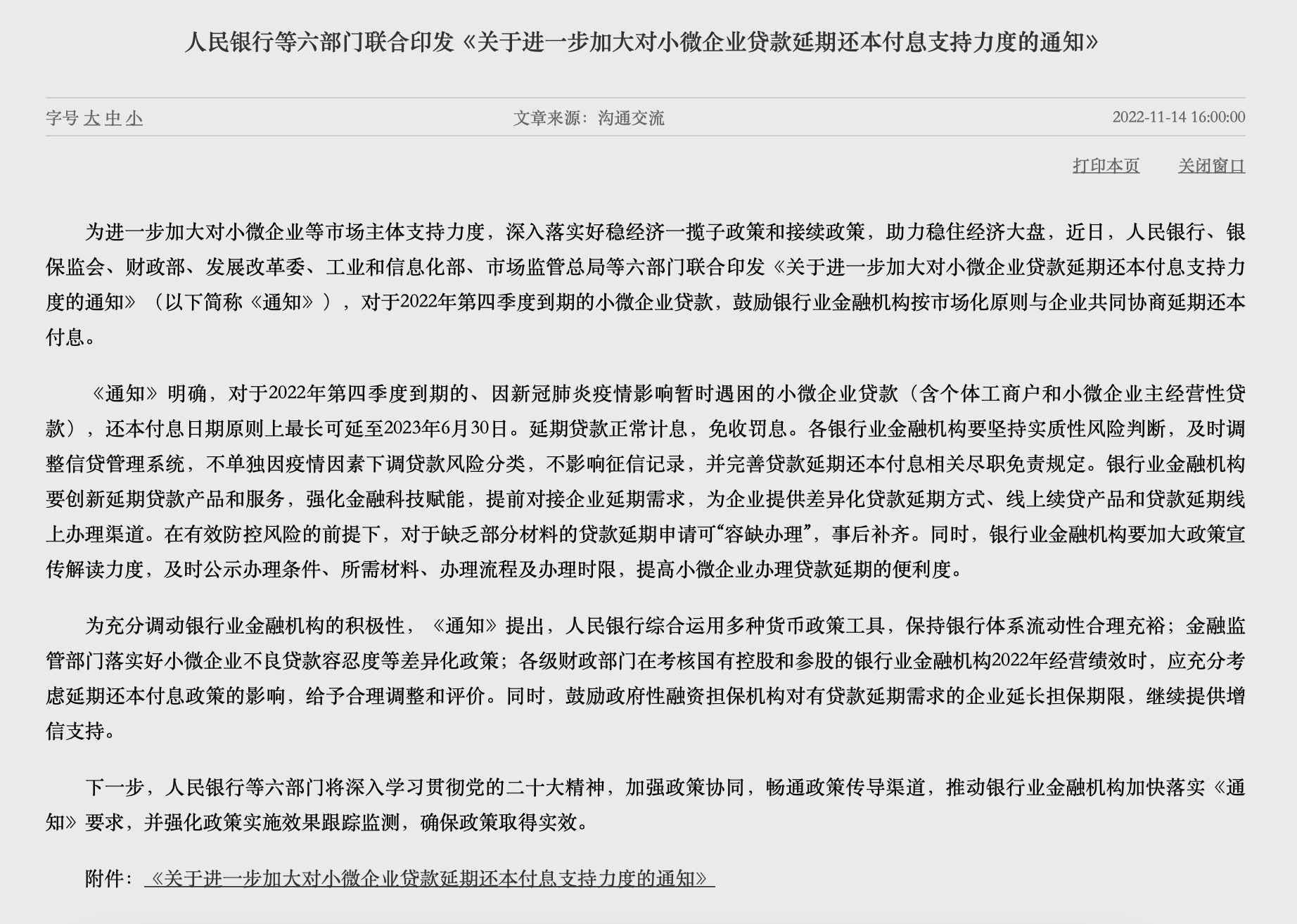 央行等六部門:進(jìn)一步加大對(duì)小微企業(yè)貸款延期還本付息支持力度2022-11-14 17:30