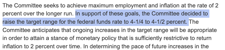 北京時間12月15日凌晨,美聯(lián)儲公布了12月份FOMC(聯(lián)邦公開市場委員會)會議聲明,根據(jù)聲明,美聯(lián)儲將聯(lián)邦基金利率提升50個基點(diǎn)至4.25%-4.5%區(qū)間,創(chuàng)十五年來新高。自今年3月份以來,美聯(lián)儲已進(jìn)行七次加息,累計(jì)加息425個基點(diǎn)。