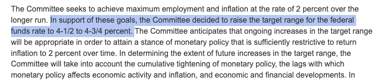 白雪進(jìn)一步分析道,結(jié)合聲明以及鮑威爾在新聞發(fā)布會(huì)上的發(fā)言來(lái)看,美聯(lián)儲(chǔ)認(rèn)為通脹已初步形成回落趨勢(shì),且首次提及“反通脹”進(jìn)程,這表明美聯(lián)儲(chǔ)對(duì)通脹的態(tài)度已有明顯軟化。加之聲明中強(qiáng)調(diào),未來(lái)利率上調(diào)的“程度”(而非此前的“速度”)將取決于包括貨幣政策緊縮的累積影響,意味著美聯(lián)儲(chǔ)加息周期可能進(jìn)入最后階段。