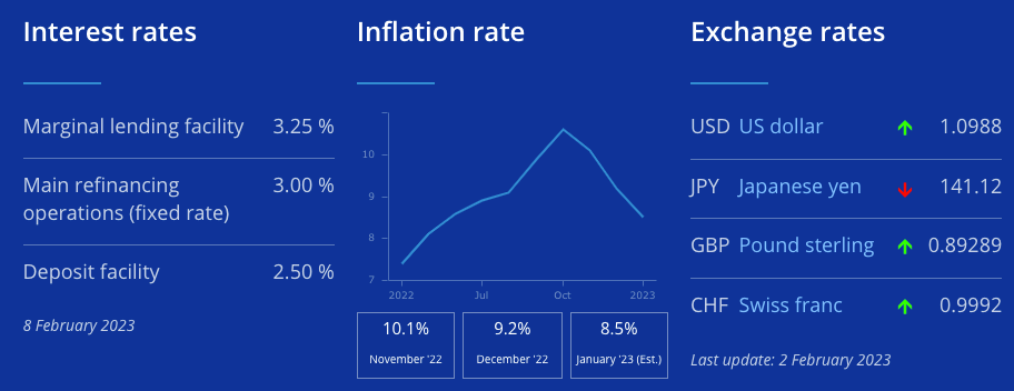 自2022年7月份開啟加息進(jìn)程以來(lái),歐洲央行已連續(xù)進(jìn)行5次大幅加息以控制高企的通脹問題,累計(jì)加息幅度達(dá)到300個(gè)基點(diǎn)。歐洲央行行長(zhǎng)拉加德在當(dāng)天的新聞發(fā)布會(huì)上表示,由于潛在的通脹壓力,歐洲央行擬于3月份再次加息50個(gè)基點(diǎn),但屆時(shí)并不會(huì)達(dá)到利率峰值,后續(xù)將再評(píng)估加息路徑,幅度可能是50個(gè)或者25個(gè)基點(diǎn)。