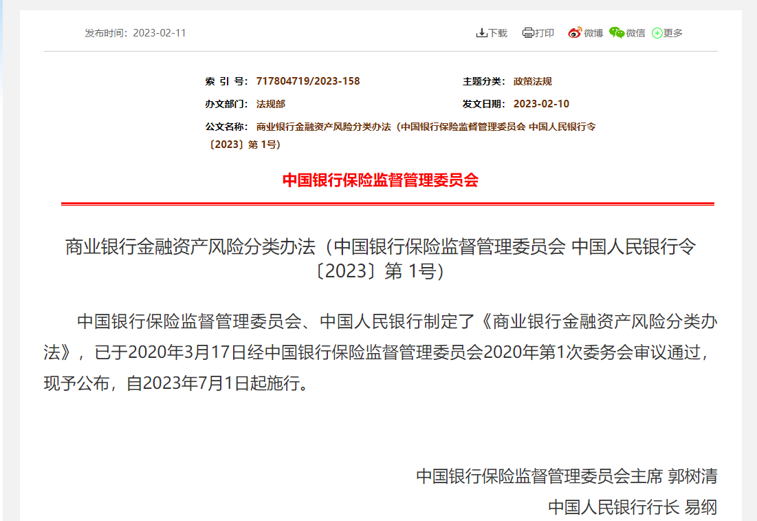 2月11日,由銀保監(jiān)會(huì)、人民銀行聯(lián)合制定的《商業(yè)銀行金融資產(chǎn)風(fēng)險(xiǎn)分類辦法》(以下簡稱《辦法》)正式發(fā)布,以進(jìn)一步推動(dòng)商業(yè)銀行準(zhǔn)確識別、評估信用風(fēng)險(xiǎn),真實(shí)反映資產(chǎn)質(zhì)量。