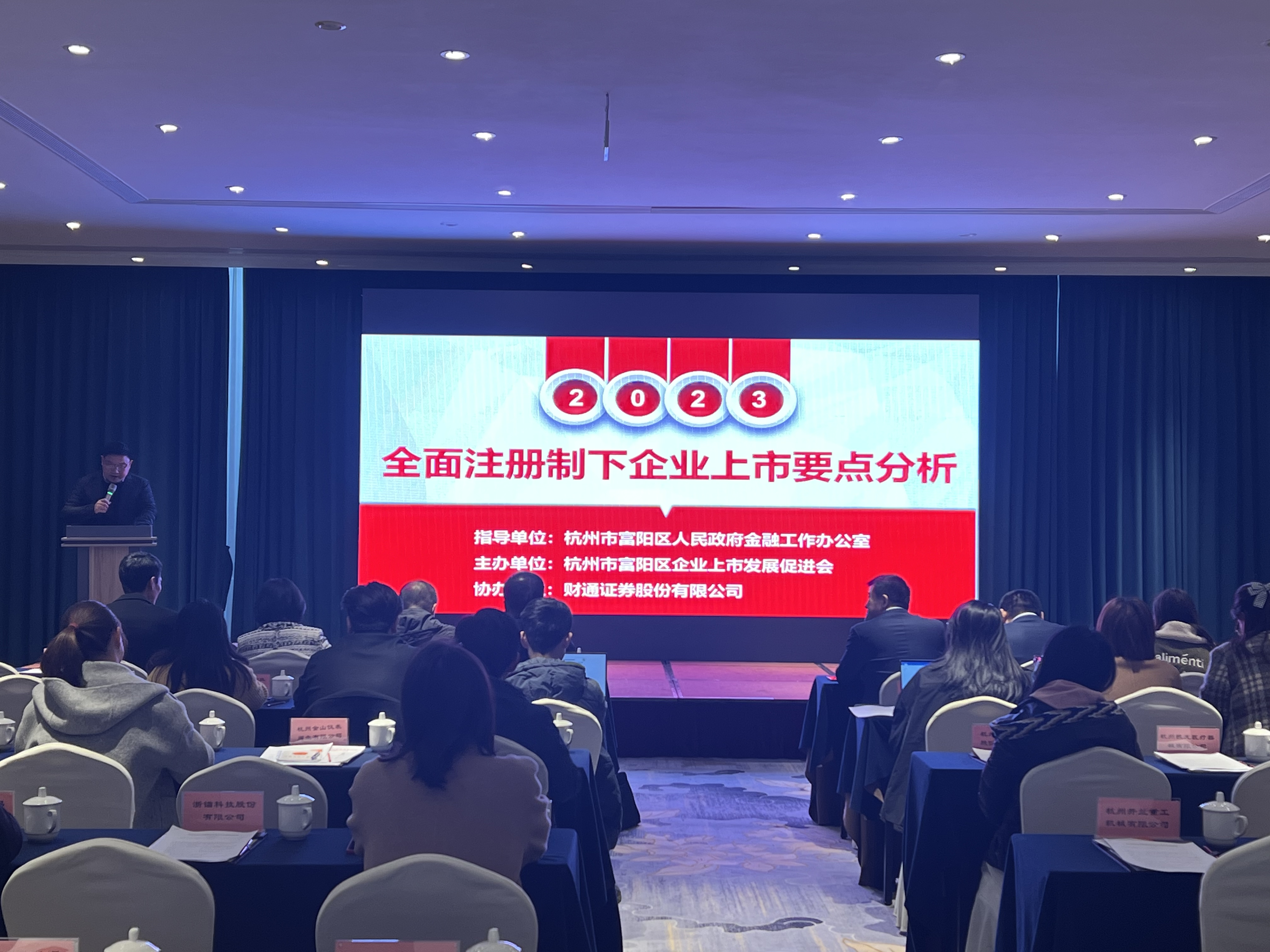 近日,全面注冊制下企業(yè)上市要點分析會在杭州市富陽區(qū)舉行。本次活動由富陽區(qū)金融辦、區(qū)應(yīng)急管理局指導(dǎo),富陽區(qū)企業(yè)上市促進會、財通證券投資銀行總部承辦?;顒蝇F(xiàn)場超50位區(qū)內(nèi)上市后備企業(yè)及相關(guān)企業(yè)代表參會。