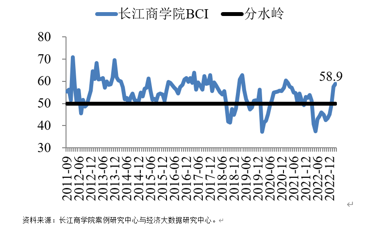 我國經(jīng)濟持續(xù)整體好轉(zhuǎn)態(tài)勢明顯,3月份的“長江商學院中國企業(yè)經(jīng)營狀況指數(shù)”(以下簡稱BCI指數(shù))為58.9,與2023年2月的57.6相比有小幅上升。3月BCI指數(shù)延續(xù)上月抬升勢頭,經(jīng)過連續(xù)5個月上升,現(xiàn)在指數(shù)已接近60的水平,這意味著BCI指數(shù)調(diào)查范圍內(nèi)企業(yè)對6個月內(nèi)的發(fā)展趨勢持相對樂觀的態(tài)度。