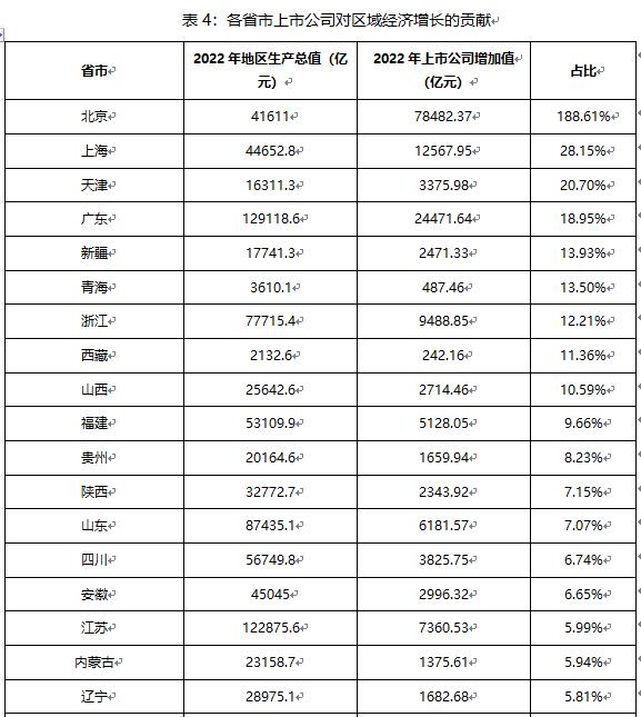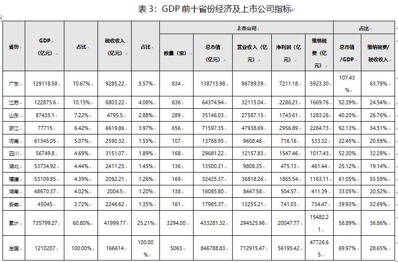 3、上市公司為GDP排名前十的省份貢獻(xiàn)了36.86%的稅收收入