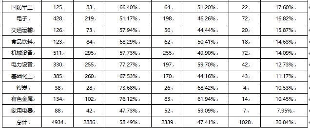 5、2.55%金融業(yè)(129家)上市公司貢獻(xiàn)了43.76%的凈利潤