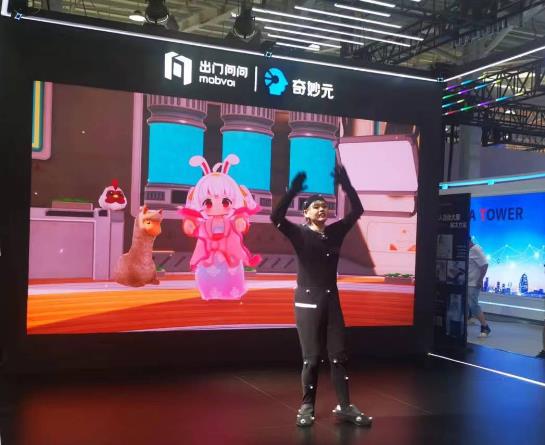 出門(mén)問(wèn)問(wèn)展區(qū)大屏幕前,身著動(dòng)捕服裝的工作人員正跟隨音樂(lè)舞動(dòng)身姿,她背后大屏幕上軟萌的3D數(shù)字人也隨之翩翩起舞。張佳欣介紹,奇妙元最輕量的技術(shù)解決方案,只用一個(gè)手機(jī)攝像頭就可以驅(qū)動(dòng)數(shù)字人的動(dòng)作、表情,用戶能夠讓企業(yè)像做PPT一樣輕松制作數(shù)字人視頻和直播。