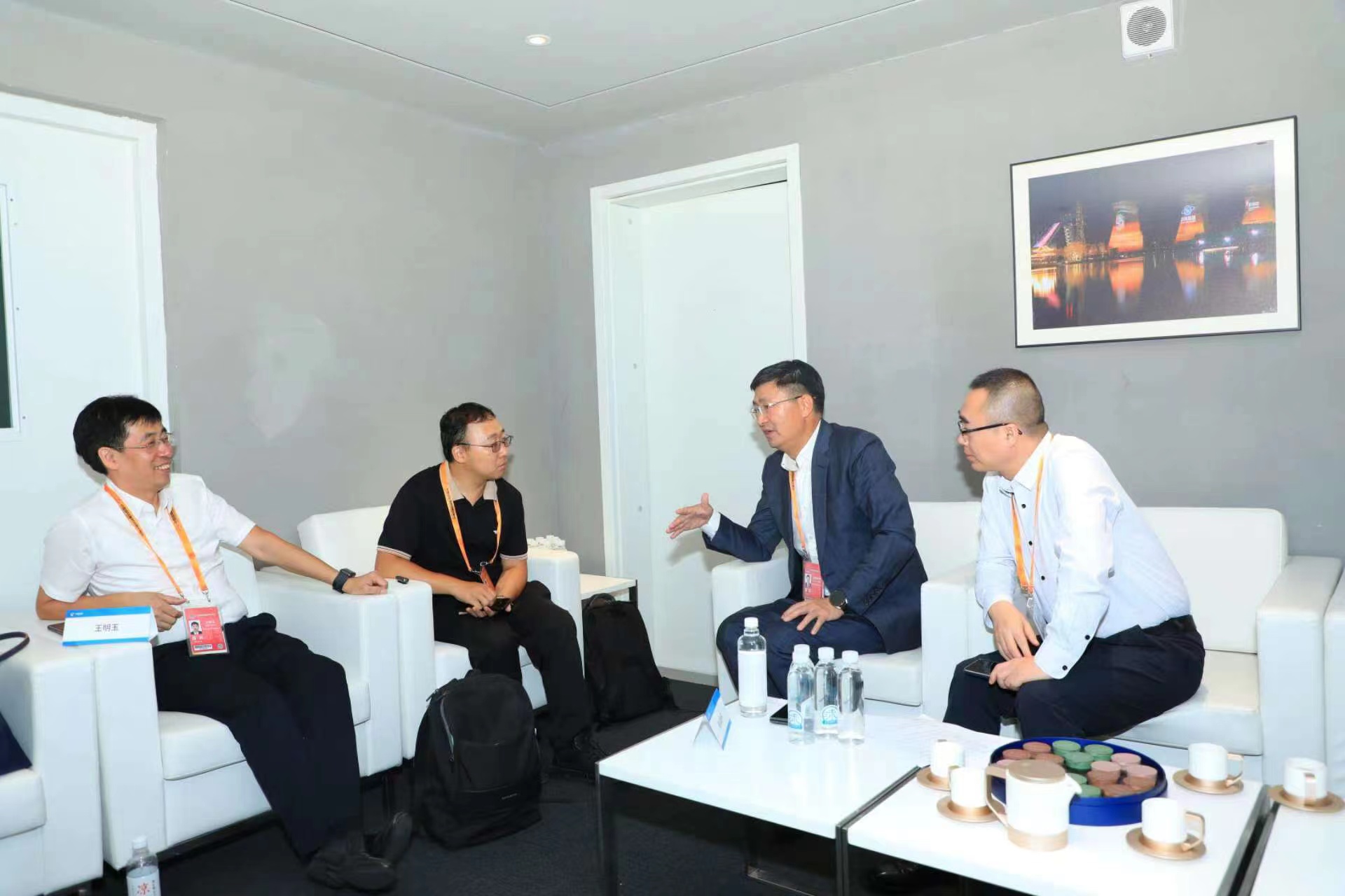 歐陽建平(右二)接受《證券日?qǐng)?bào)》記者采訪