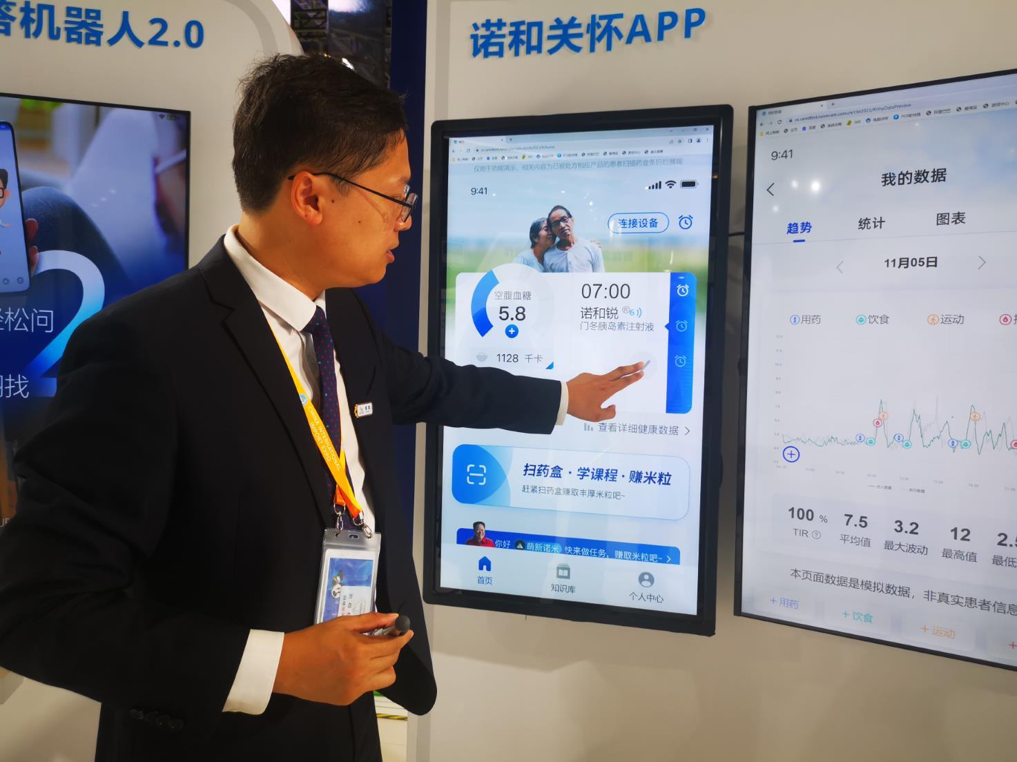 距離美敦力展臺(tái)不遠(yuǎn)的諾和諾德展臺(tái)上,有四項(xiàng)首展產(chǎn)品正式亮相,包括1款一站式糖尿病自我管理數(shù)字化解決方案——諾和關(guān)懷APP,1款新注射裝置首展,2個(gè)創(chuàng)新藥的臨床研究結(jié)果文獻(xiàn)首展?!蹲C券日報(bào)》記者發(fā)現(xiàn),許多觀眾都對諾和關(guān)懷APP產(chǎn)生了極大的興趣。