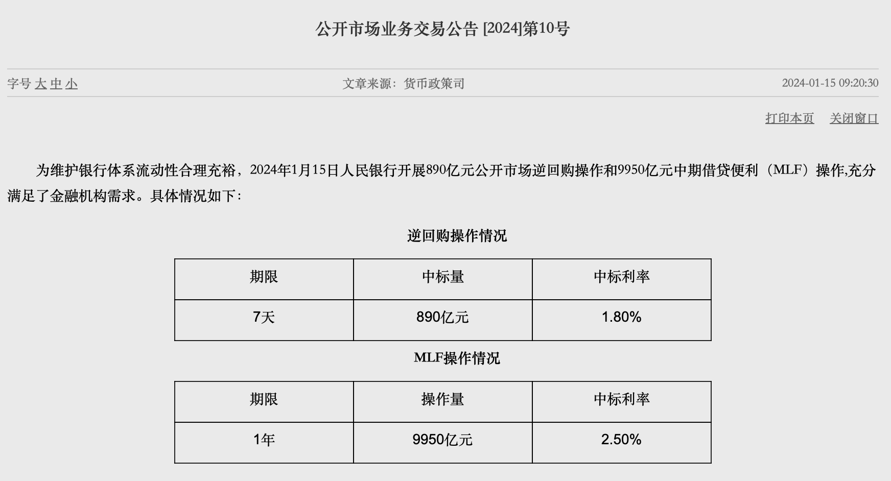 1月15日,中國人民銀行(下稱“央行”)開展今年首次MLF(中期借貸便利)操作。