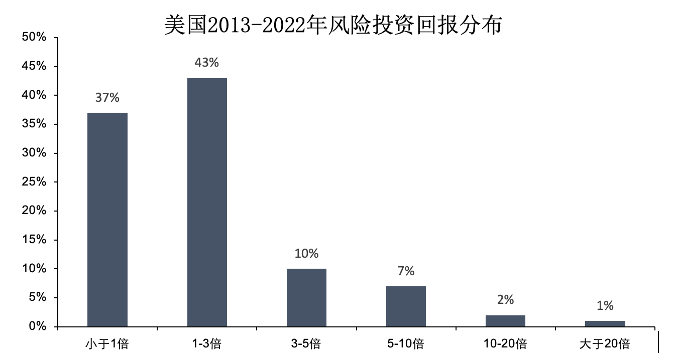 二是不確定性高??萍佳邪l(fā)本身是高風險的領(lǐng)域。以CorrelationVentures統(tǒng)計的2013-2022年的美國風險投資機構(gòu)的情況為例,小于1倍回報的投資項目,占總投資額的37%,1-3倍回報的項目占總投資額的43%,3倍以上回報的項目占20%,其中,20倍以上超額回報項目僅占1%。也就是說,對科技行業(yè)的投資,近四成的項目金額都是要虧本的。