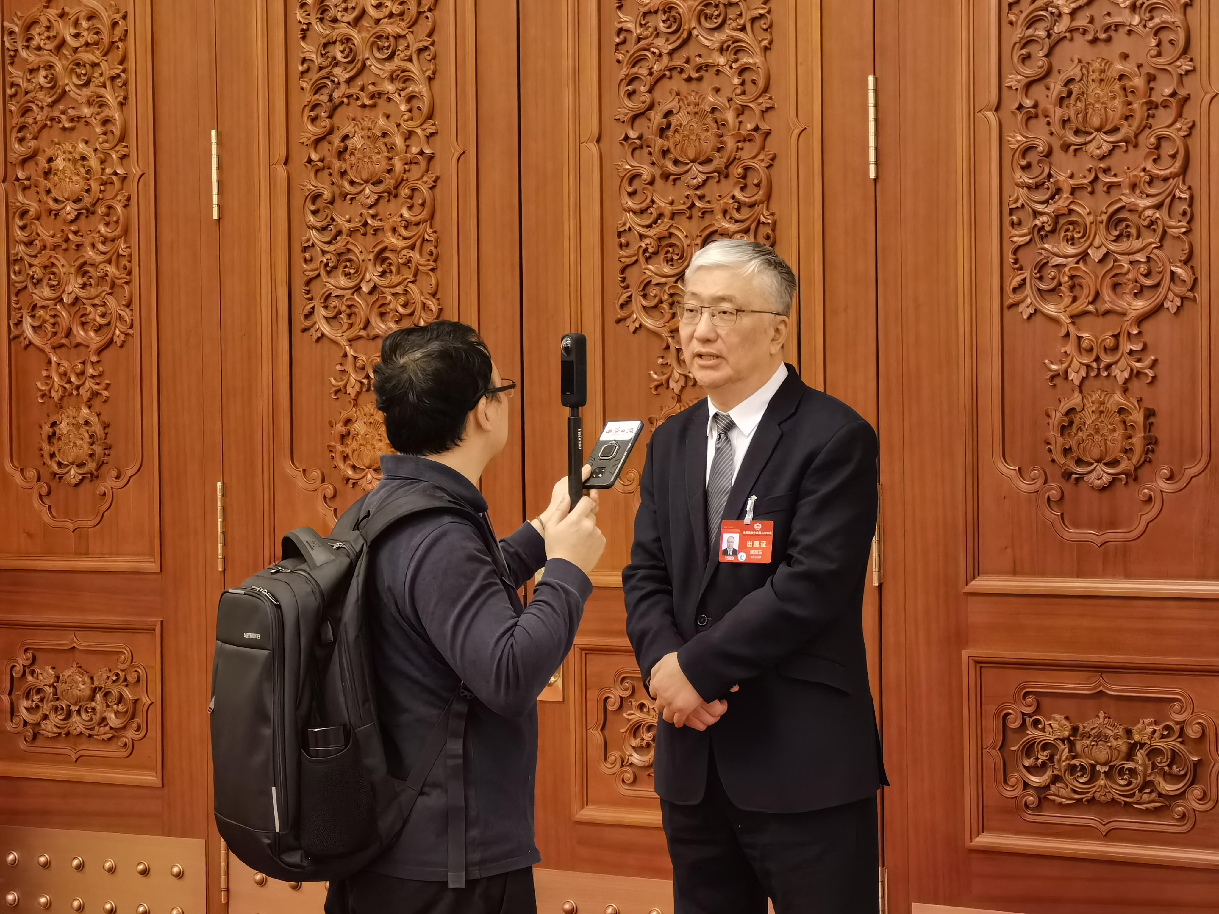 圖為唐旭東在“委員通道”結(jié)束后接受《證券日報》記者采訪。徐嘉碩/攝
