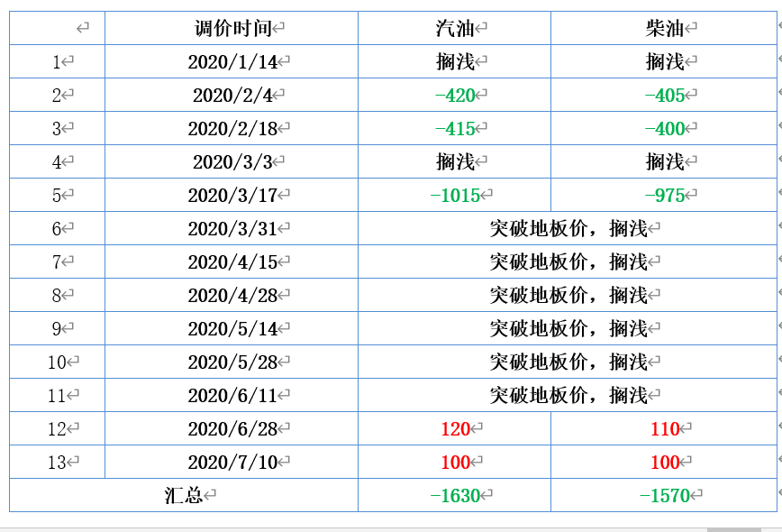 據(jù)統(tǒng)計(jì),經(jīng)過(guò)本次上調(diào)之后,2020年國(guó)內(nèi)成品油零售限價(jià)共歷經(jīng)13次調(diào)整,其中3次下調(diào)、2次擱淺、2次上調(diào),6次不作調(diào)整。漲跌互抵之后,汽油累積下調(diào)1630元/噸,柴油累積下調(diào)1570元/噸,折升價(jià)92#汽油下調(diào)1.28元/升,柴油下調(diào)1.34元/升。