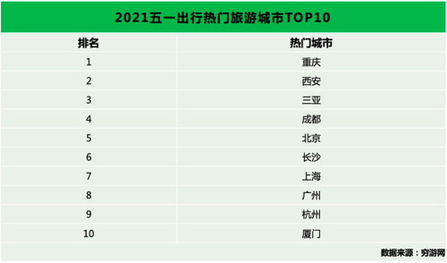 隨著五一假期臨近,國內旅游熱度持續(xù)走高。近日,窮游網發(fā)布了《2021年五一旅游趨勢預測報告》。報告顯示,重慶、西安、三亞最受游客青睞,親子游熱度高漲且消費能力突出,親子游在國內的單次旅行消費較2019年提高了37.8%。