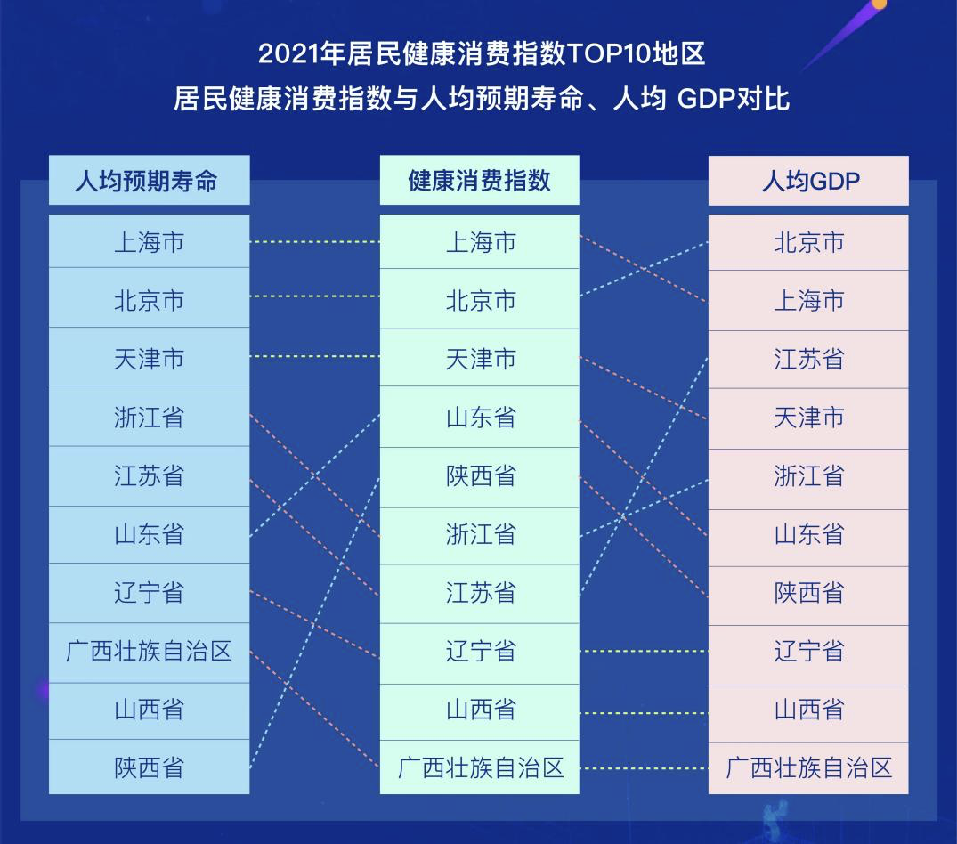 該指數(shù)旨在使用消費(fèi)大數(shù)據(jù)衡量不同地區(qū)居民消費(fèi)習(xí)慣對(duì)居民健康的影響,通過(guò)測(cè)算不同地區(qū)居民平均每日消耗煙酒、蔬菜瓜果和肉蛋奶等商品以及經(jīng)常參與體育鍛煉比例的具體數(shù)值,參考權(quán)威醫(yī)學(xué)實(shí)證研究得出上述消費(fèi)行為對(duì)于健康的影響系數(shù),進(jìn)而推算得來(lái)。