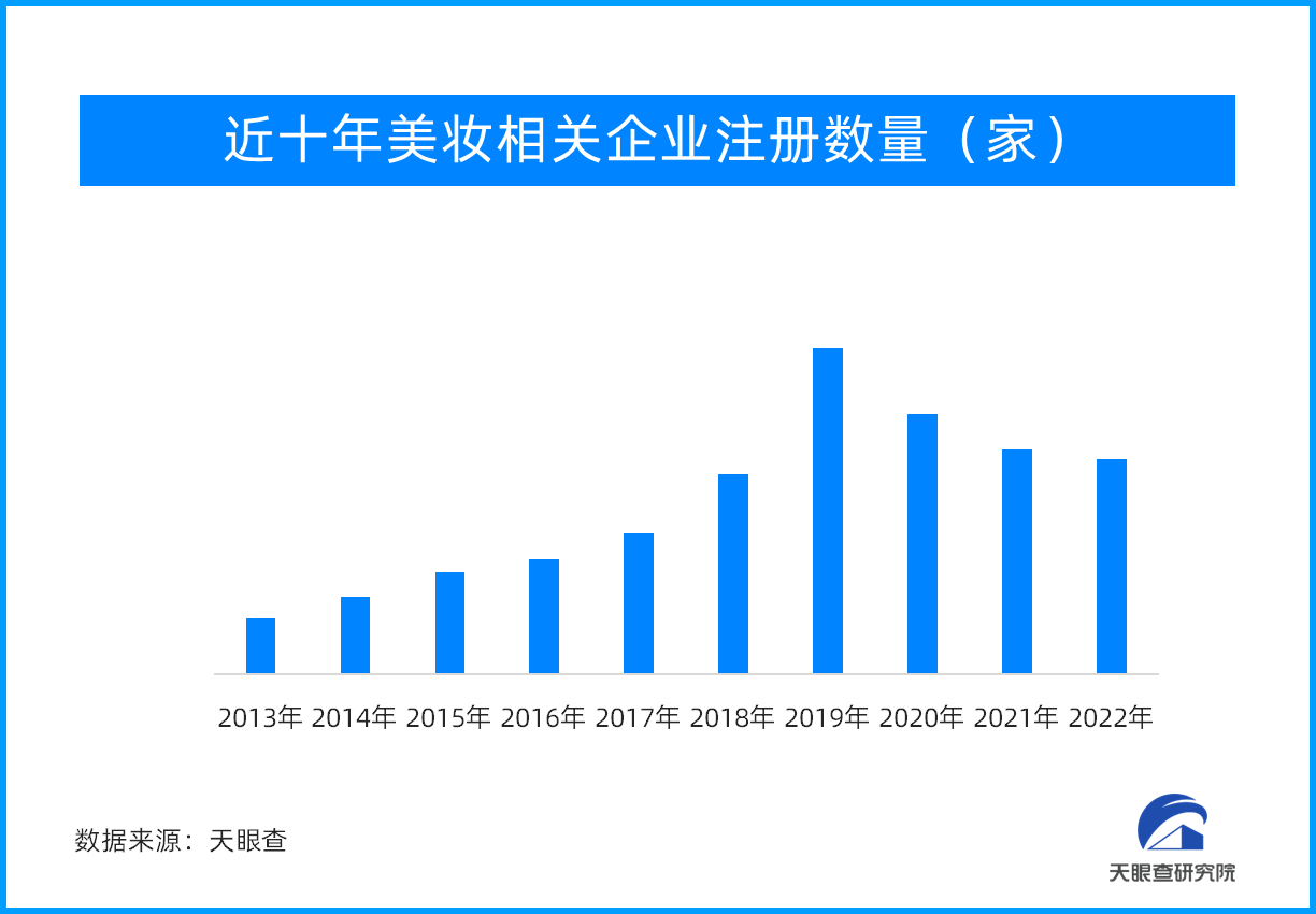 天眼查數(shù)據(jù)顯示,截至目前,我國(guó)現(xiàn)存美妝相關(guān)企業(yè)80.5萬(wàn)余家,其中,2022年新增注冊(cè)企業(yè)8.8萬(wàn)余家,新增注冊(cè)企業(yè)增速12.7%;