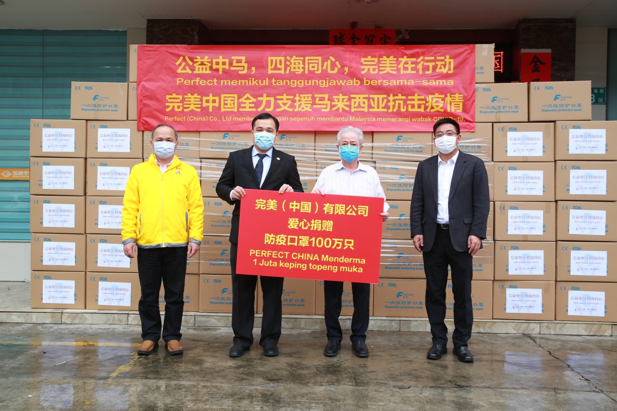 ▲2020年3月31日完美公司向馬來西亞政府捐贈100萬只口罩