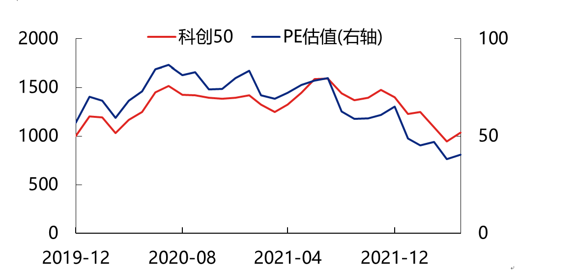 而今天,科創(chuàng)50指數(shù)從2021年8月初的1639點(diǎn),一度跌至2022年4月的853點(diǎn)。即便5月至今有所反彈,但仍有接近4成的科創(chuàng)板個(gè)股股價(jià)低于發(fā)行價(jià),大量公司都已經(jīng)經(jīng)歷了甚至50%以上的回撤幅度。從估值層面上看,同樣已是科創(chuàng)板開(kāi)板以來(lái)最低水平,科創(chuàng)50指數(shù)40倍左右的PE估值,已低于創(chuàng)業(yè)板指49倍左右的水平。