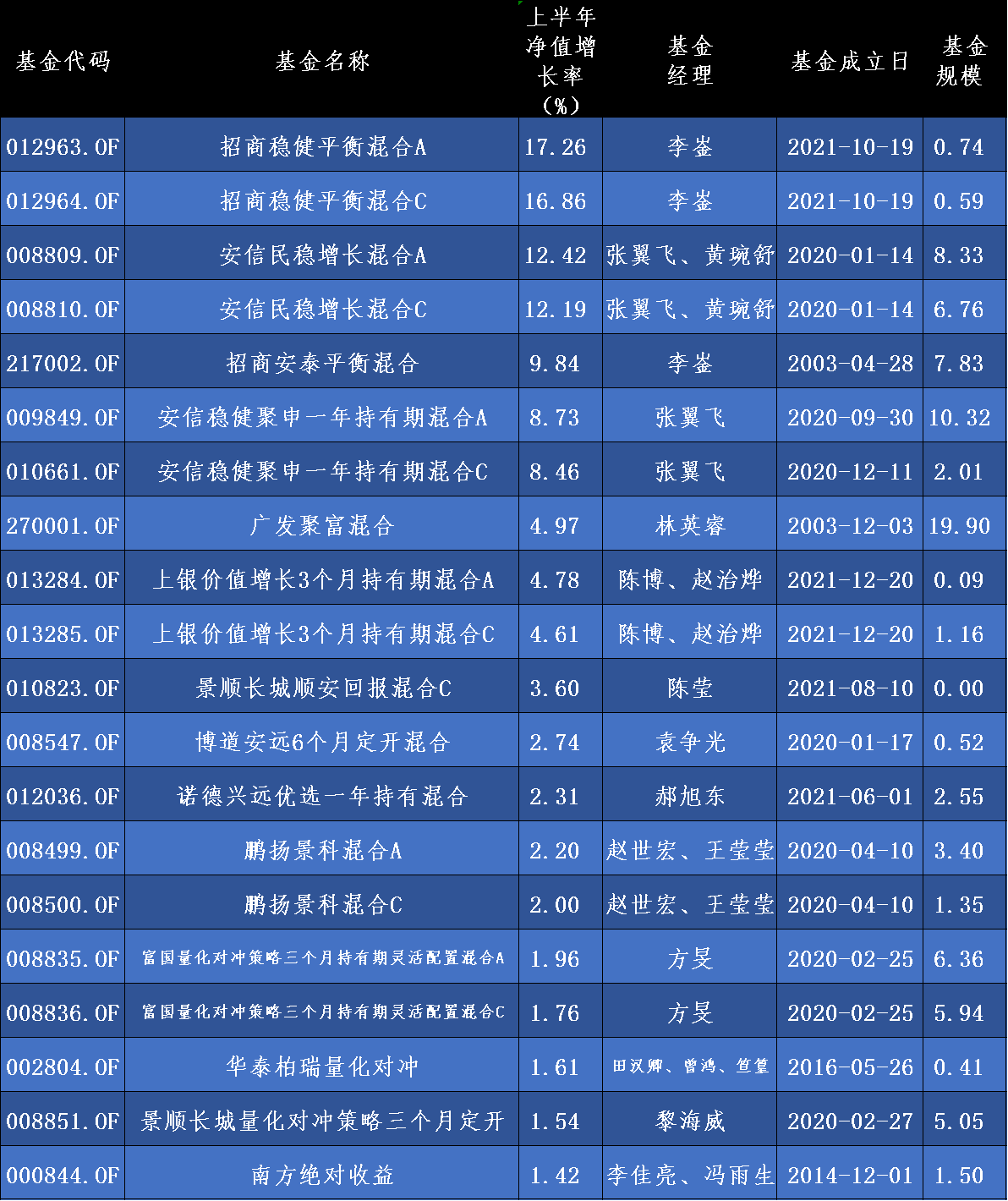【偏股混合型基金前20名業(yè)績排行榜】