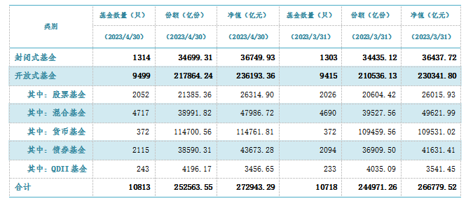 5月25日晚,中國(guó)證券投資基金業(yè)協(xié)會(huì)發(fā)布2023年4月份公募基金市場(chǎng)數(shù)據(jù)。