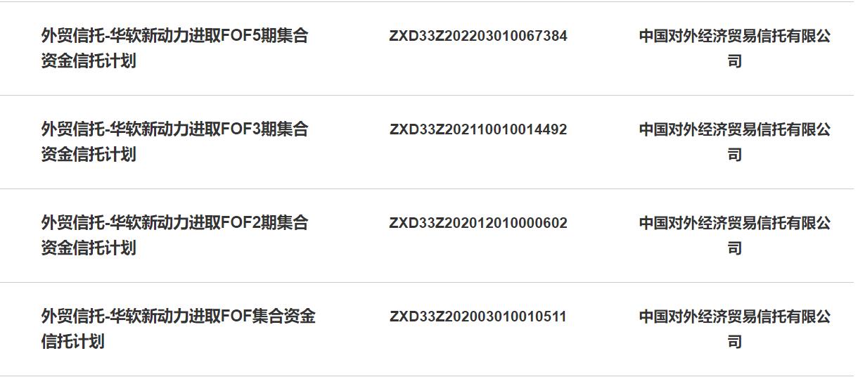 事實上,外貿(mào)信托與華軟新動力合作頗深,據(jù)中國信托登記有限責任公司官網(wǎng)數(shù)據(jù),4款涉及華軟新動力相關(guān)FOF信托產(chǎn)品的發(fā)行機構(gòu)均為外貿(mào)信托。