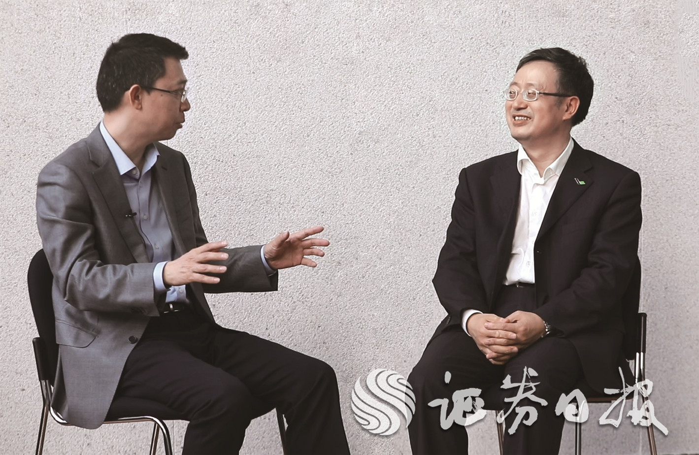 圖為中國(guó)商用飛機(jī)有限責(zé)任公司黨委委員、總會(huì)計(jì)師周啟民(右)接受證券日?qǐng)?bào)副總編輯董少鵬(左)專訪 (攝影/新華網(wǎng)記者 丁新珂)