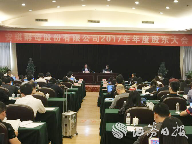4月18日,安琪酵母的2017年年度股東大會在宜昌夷陵飯店舉行,現(xiàn)場座無虛席,來自全國各地的投資者和研究員約100人參加會議。