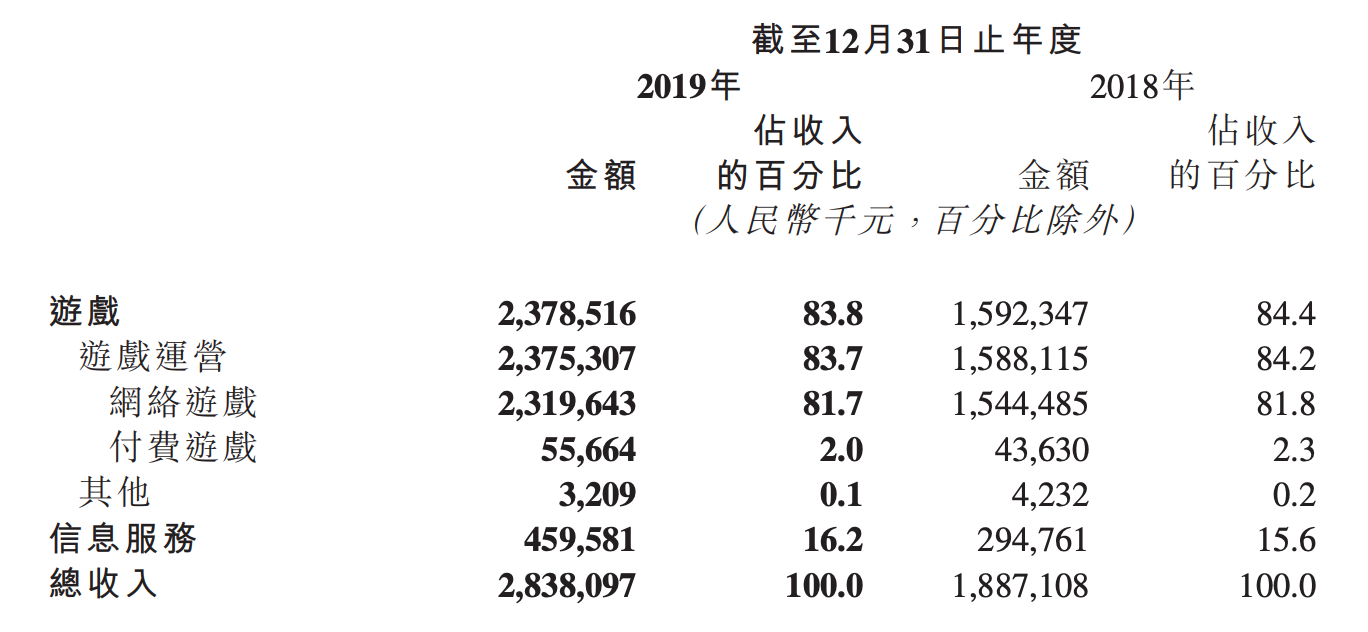 2019年,心動(dòng)公司的游戲組合由38款網(wǎng)絡(luò)游戲及11款付費(fèi)游戲組成。其中,網(wǎng)絡(luò)游戲2019年收入23.2億元,占總收入比81.7%,同比增長(zhǎng)50.2%。