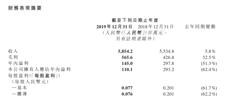 3月31日晚間,科通芯城(0400.HK)發(fā)布了2019年財(cái)報(bào),全年收入58.54億元,比2018年微增5.8%,毛利5.65億元,比2018年增長(zhǎng)32.5%,但歸屬于母公司股東凈利潤(rùn)為1.1億元,相比2018年下降了62.4%。