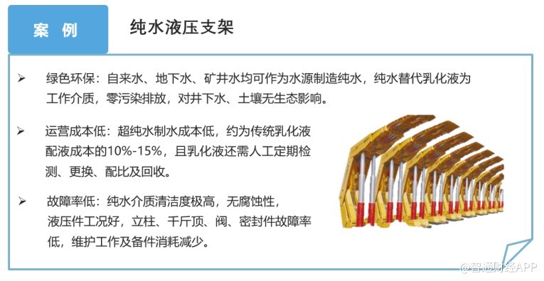 記者從公司了解到,公司主推的綠色環(huán)保產(chǎn)品純水液壓支架,以純水液壓代替?zhèn)鹘y(tǒng)乳化液配液,填補(bǔ)了國內(nèi)外綜采工作面使用純水介質(zhì)的空白。自來水、地下水、礦井水均可作為水源制造純水,真正實(shí)現(xiàn)零污染排放,對(duì)井下水、土地生態(tài)亦不產(chǎn)生影響,符合國家環(huán)保政策要求。公司的這款綠色、環(huán)境友好型的產(chǎn)品不僅減少了因煤炭開采對(duì)生態(tài)的影響,實(shí)現(xiàn)了乳化液零消耗、井下水資源零污染,而且還降低了煤炭開采成本,控制了零部件故損率,延長了液壓支架使用壽命,提高了生產(chǎn)效率。