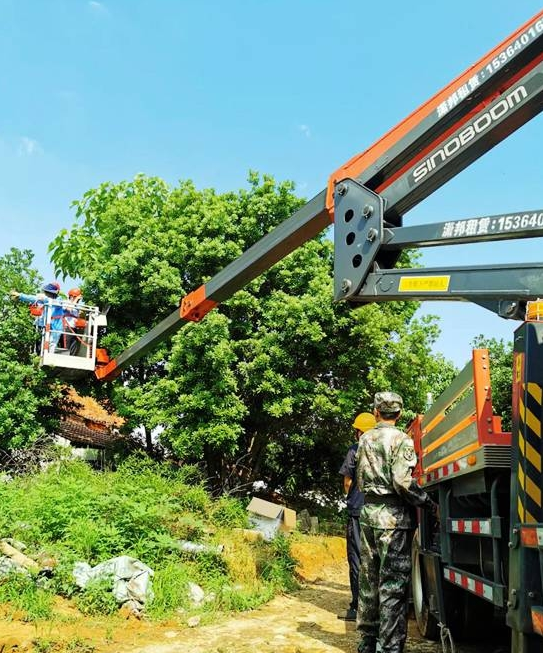 星邦智能的高空作業(yè)車在貧困戶的楊梅園中抓緊時(shí)間采收果實(shí)(供圖:肖偉)