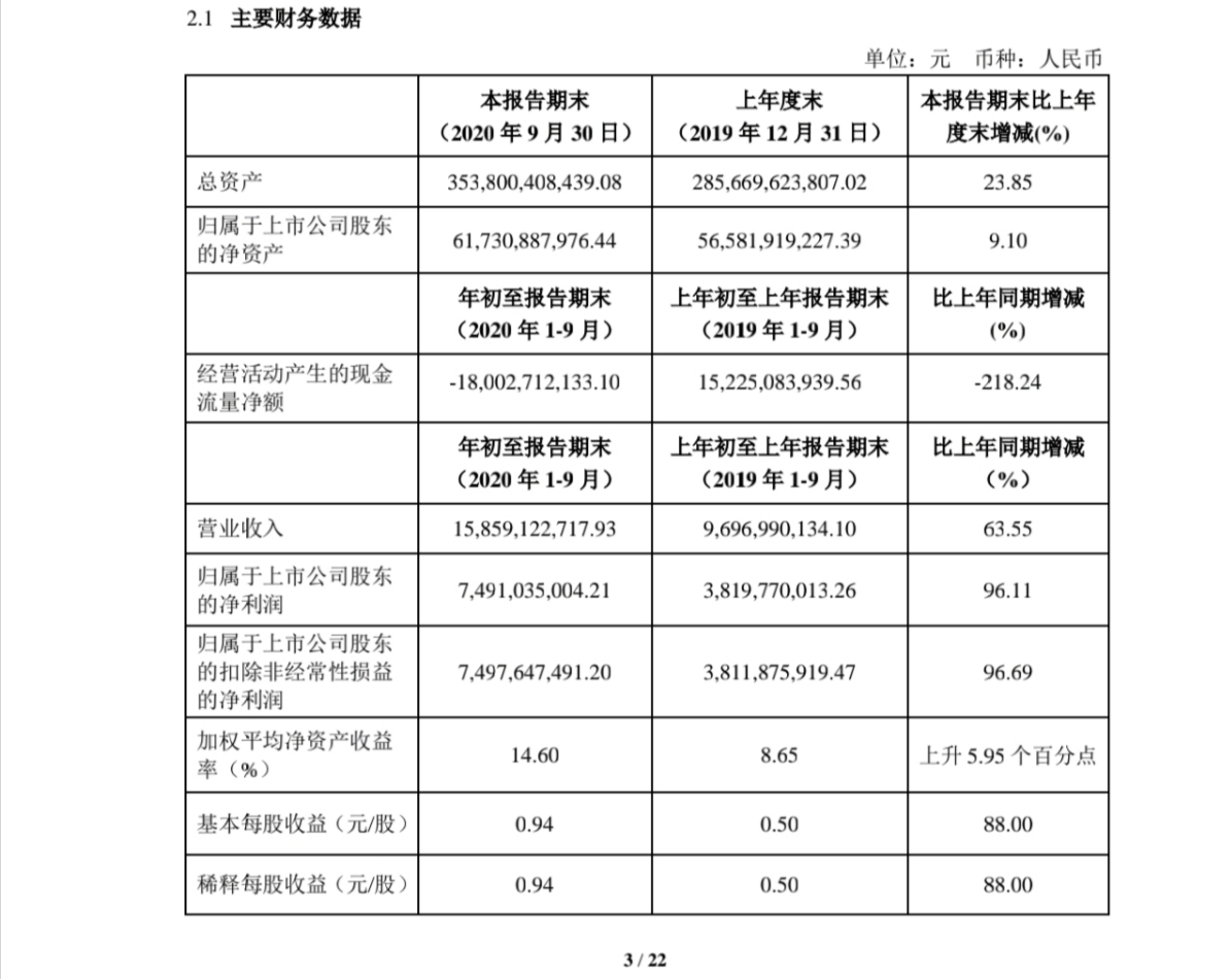 10月23日,中信建投發(fā)布第三季度業(yè)績報告顯示,前三季度實現(xiàn)營業(yè)收入158.59億元,同比增長63.55%;實現(xiàn)歸屬于上市公司股東的凈利潤為74.91億元,同比增長96.11%。