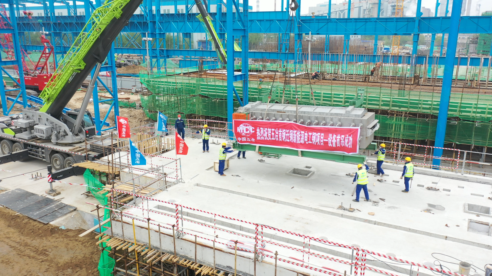 2021年4月30日上午首鋼新能源汽車材料項(xiàng)目首套設(shè)備——連退七號(hào)線堿噴洗槽一次吊裝成功,標(biāo)志著首鋼新能源項(xiàng)目全面進(jìn)入了設(shè)備安裝階段。