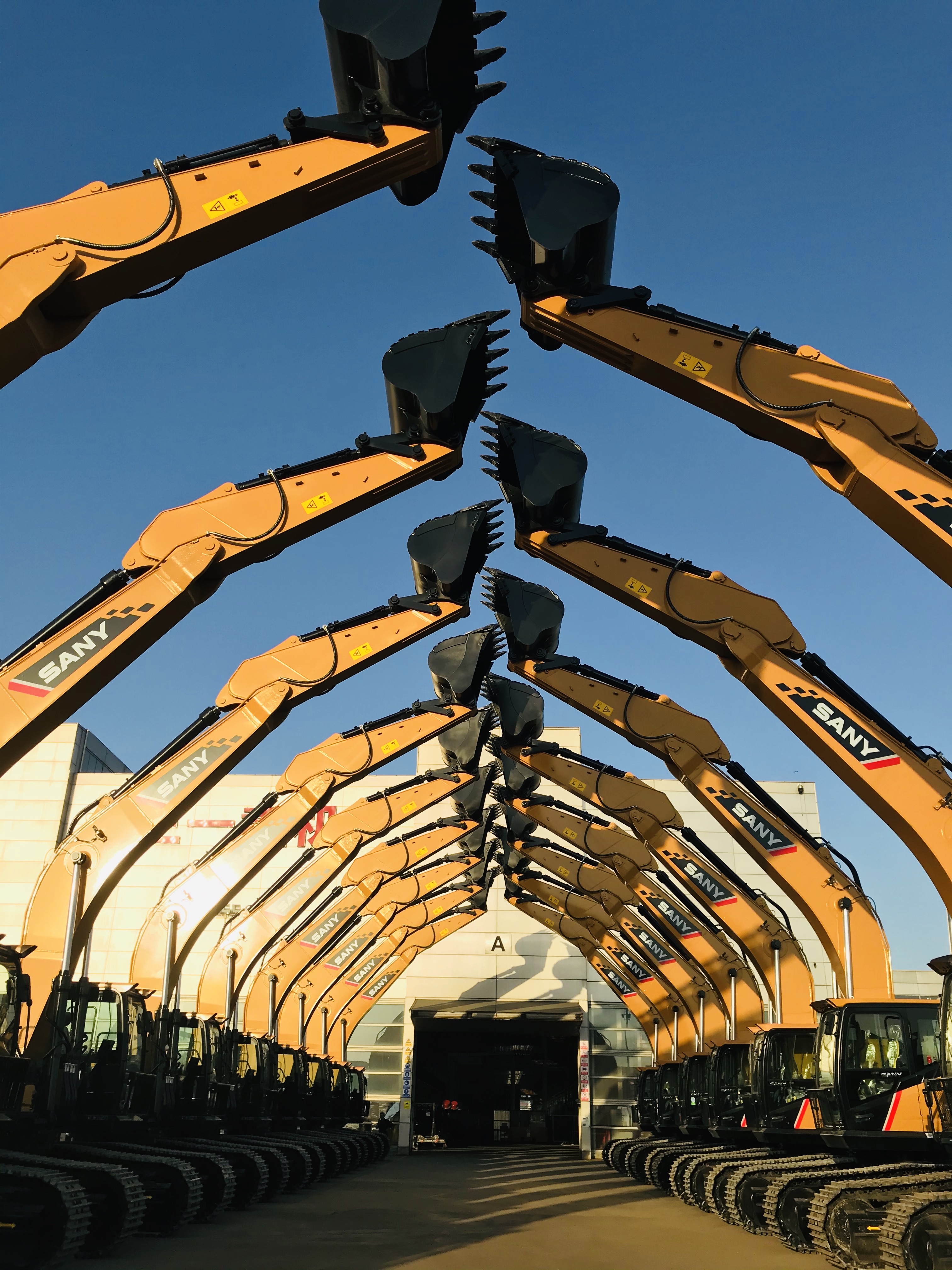 準備交付客戶的三一挖機(攝影:肖偉)