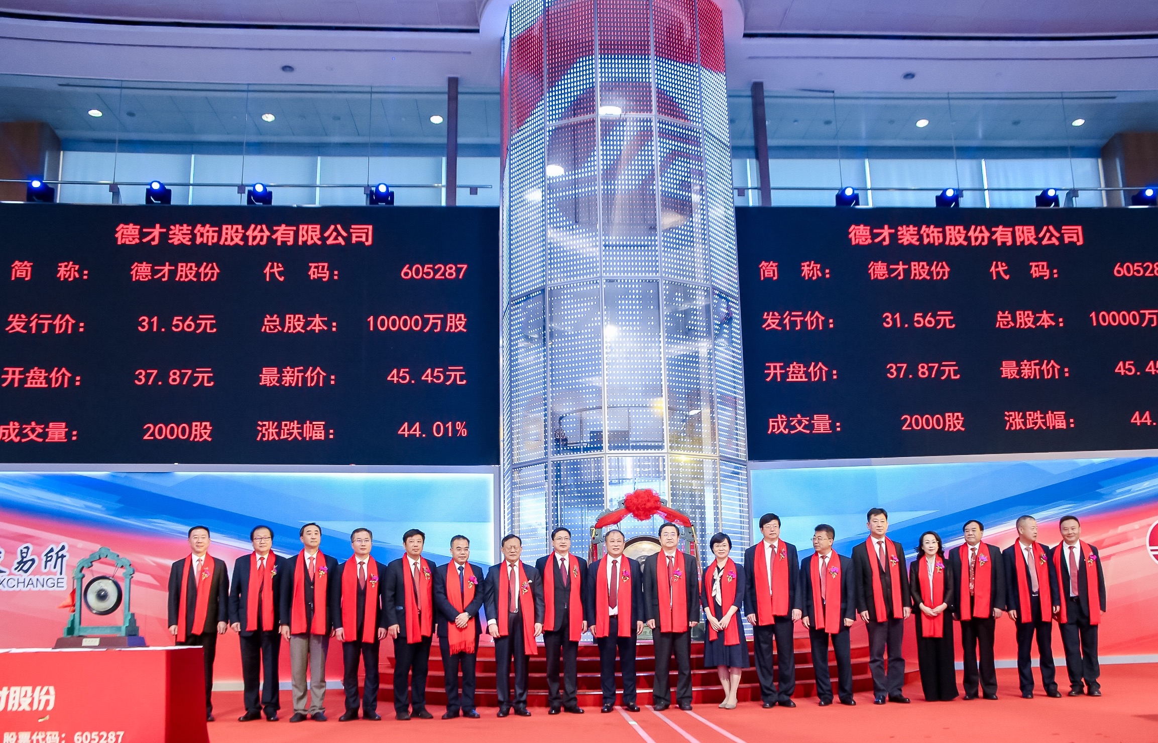 7月6日,德才裝飾股份有限公司(股票簡稱:德才股份,股票代碼:605287)在上交所主板正式上市,成為山東省第一家在國內A股上市的建筑業(yè)企業(yè)。