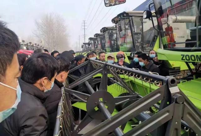農(nóng)友們正在圍觀中聯(lián)重科農(nóng)機新品(供圖:中聯(lián)重科)