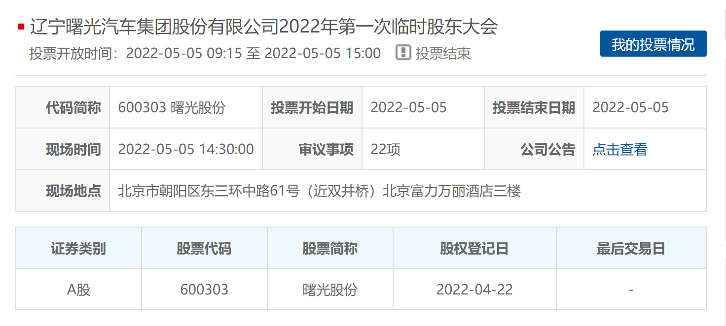 5月5日晚間,上交所網(wǎng)站顯示曙光股份第一次臨時股東大會已投票結束(來源:上交所)