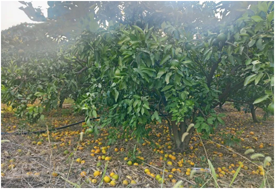 柑橘快要熟了卻掉滿(mǎn)地(攝影:肖偉)