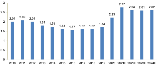 根據(jù)IDC數(shù)據(jù)顯示,2012年-2016年期間,全球筆記本電腦出貨量呈現(xiàn)整體下降的趨勢。自2016年以來,筆記本電腦出貨量基本保持穩(wěn)定。雖然2020年后,筆記本電腦市場有所回暖,但筆記本電腦產(chǎn)業(yè)已步入成熟期,市場規(guī)模增速緩慢。